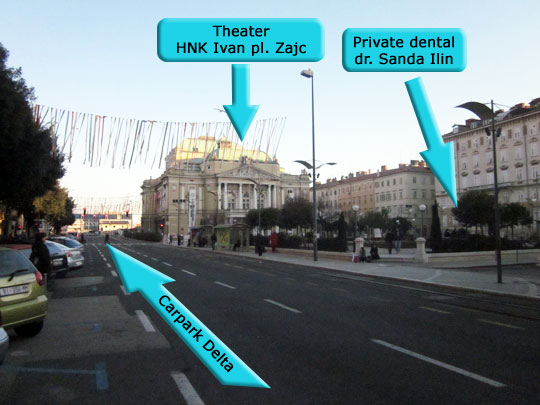 Lo studio dentistico della dottoressa Ilin si trova nel centro della città di Fiume, accanto al teatro "Ivan pl. Zajc".